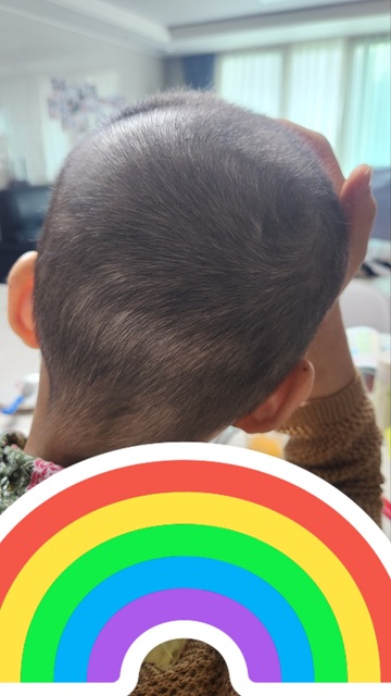 두피가 보이지 않게 빼곡히 머리가 났네요. 이 때 얼마나 기쁘던지요.